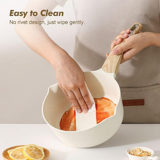 - Healthy Ceramic Sauce Pan - Ceramic nonstick surface, safe and non toxic, free of PFOA, PTFE, PFAS, lead, cadmium and other toxic substances that can leach into food. Ceramic coatings feature high hardness, scratch resistance, and wear resistance, ensuring long-lasting performance.