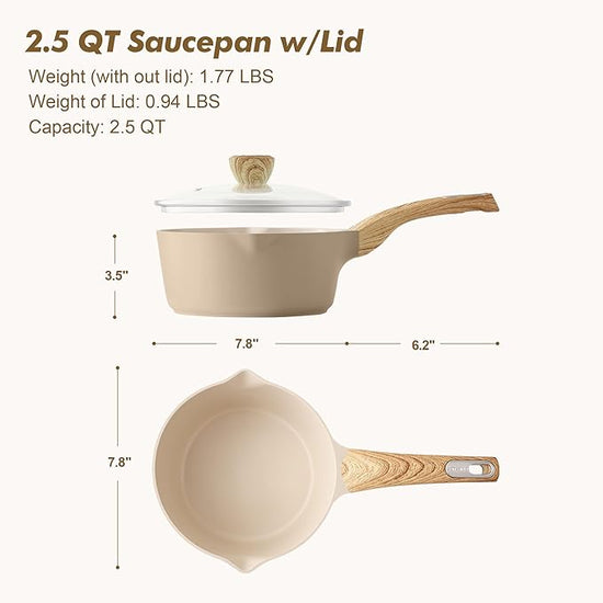 - Healthy Ceramic Sauce Pan - Ceramic nonstick surface, safe and non toxic, free of PFOA, PTFE, PFAS, lead, cadmium and other toxic substances that can leach into food. Ceramic coatings feature high hardness, scratch resistance, and wear resistance, ensuring long-lasting performance.