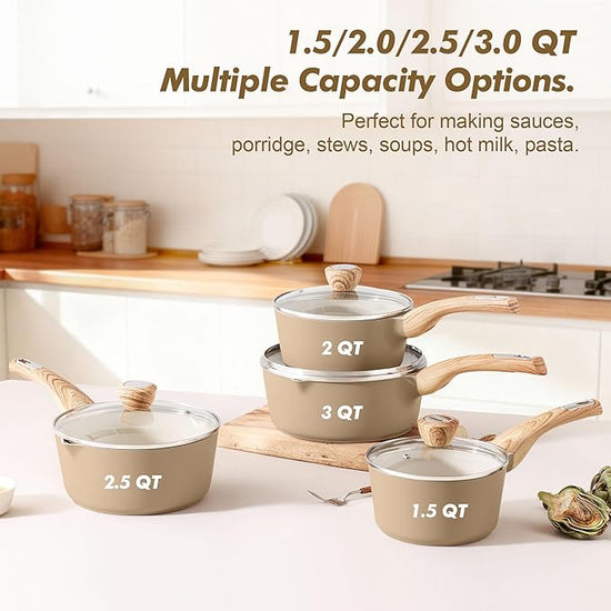 - Versatility & Optional - This sauce pot can meet your daily cooking needs, 1.5/2.0/2.5/3.0 quarts multiple sizes to choose from. Great for sauce, milk, suop, stewing, boiling, braising, blanching, pasta and more.