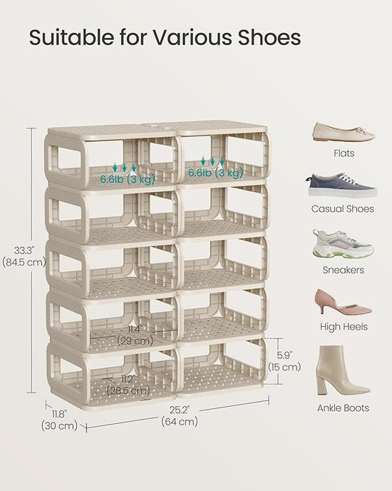 - 【STURDY AND SAFE】Made from premium PP plastic, our shoe storage organizer is sturdy and can hold up to 6.6 lb per shelf. For added safety, we've included an anti-tip kit to keep things stable