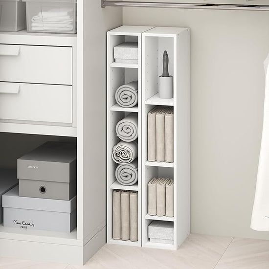 - STORAGE WITH ADJUSTABILITY: This 6" wide narrow closet storage is designed to be stackable and separable to become set of 2 4-tier storages and feature adjustable shelves to modifie shelf space for items like clothes, books, shoes, and décor, helping the closet storage keep everyday essentials organized and within reach