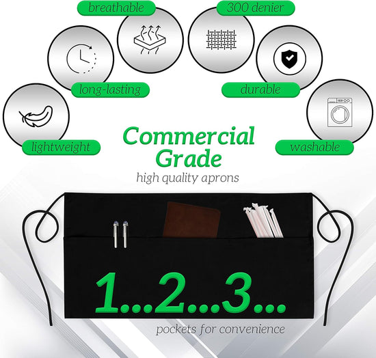 GREEN LIFESTYLE Server Aprons with 3 Pockets - Waist Apron, Waitress Apron for Women and Man, Water Resistant with Long Waist Strap Reinforced Seams, Half Apron (12 Pack - Black)GREEN LIFESTYLE Server Aprons with 3 Pockets - Waist Apron, Waitress Apron for Women and Man, Water Resistant with Long Waist Strap Reinforced Seams, Half Apron (12 Pack - Black)GREEN LIFESTYLE Server Aprons with 3 Pockets - Waist Apron, Waitress Apron for Women and Man, Water Resistant with Long Waist Strap Reinforced Seams, Half Apron (12 Pack - Black)GREEN LIFESTYLE Server Aprons with 3 Pockets - Waist Apron, Waitress Apron for Women and Man, Water Resistant with Long Waist Strap Reinforced Seams, Half Apron (12 Pack - Black)GREEN LIFESTYLE Server Aprons with 3 Pockets - Waist Apron, Waitress Apron for Women and Man, Water Resistant with Long Waist Strap Reinforced Seams, Half Apron (12 Pack - Black)GREEN LIFESTYLE Server Aprons with 3 Pockets - Waist Apron, Waitress Apron for Women and Man, Water Resistant with Long Waist Strap Reinforced Seams, Half Apron (12 Pack - Black)