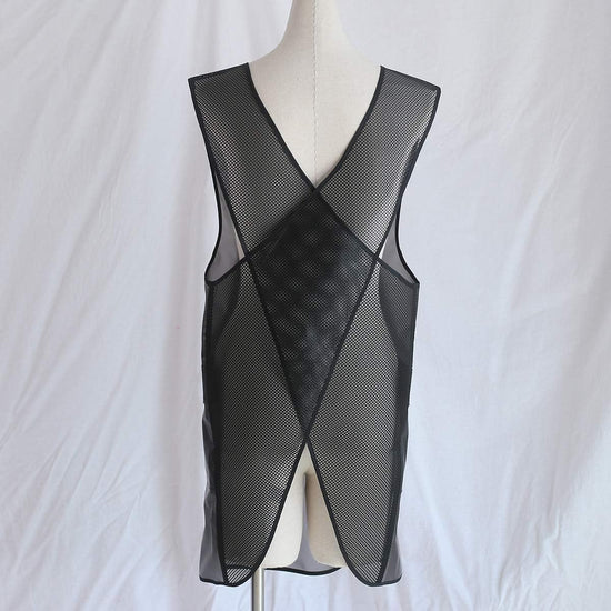 - CROSS BACK DESIGN: Cross-back design, no ties, easy to put on and take off. The back strap is made of mesh fabric, which makes this apron very breathable and sweat-wicking, especially suitable for wearing in summer