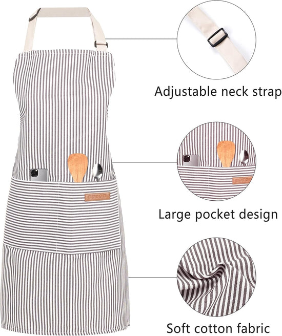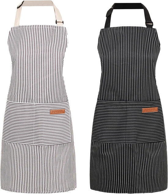 2 Pack Cooking Aprons Adjustable Bib Apron for Women with 2 Pockets, Kitchen Restaurant Men Chefs Aprons
