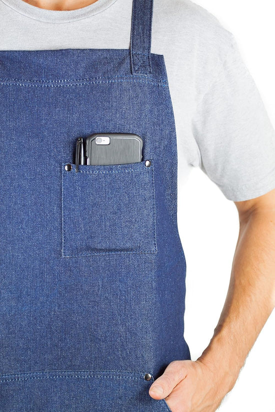 - Denim Durability – Your chef apron will be there for you for years to come. Tough denim, metal-riveted pockets, and reinforced stitching come together to make this apron a wearable fortress.