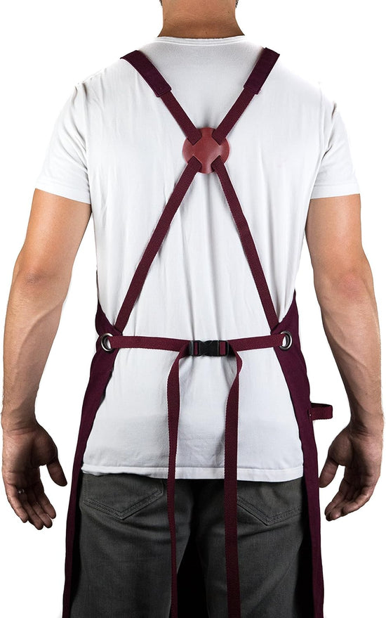 - Cook All Day in Comfort & Style - Prevent neck pain with cross-back straps. Deep red color for a stylish, upscale chef look.